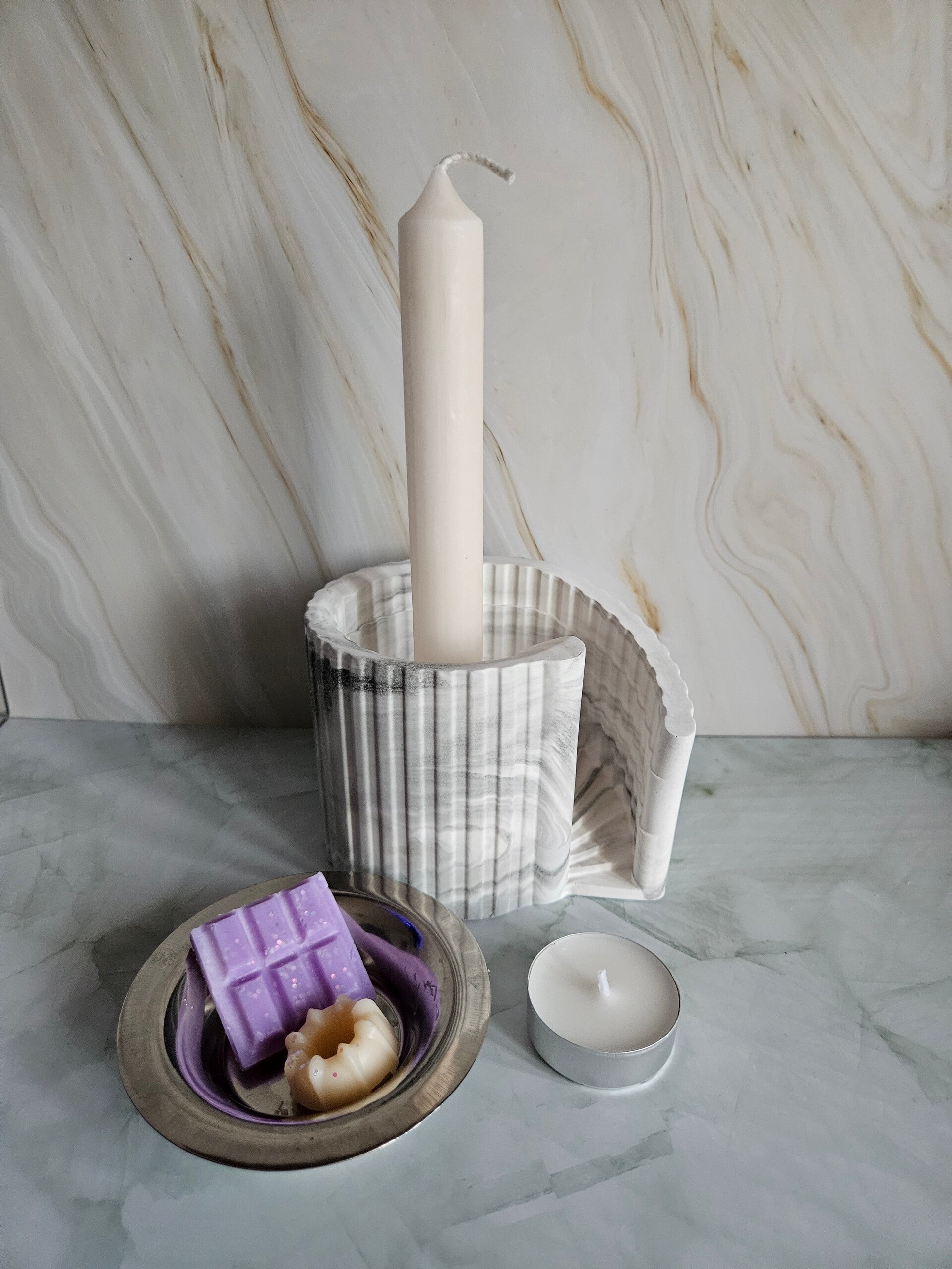 - 2 Proben Duftmelts, Teelicht & Stabkerze sind im Lieferumfang enthalten